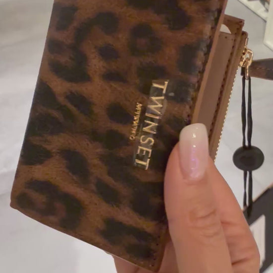 Portafogli di piccole dimensioni con stampa leopart, ecopelle con effetto pelle invecchiata
