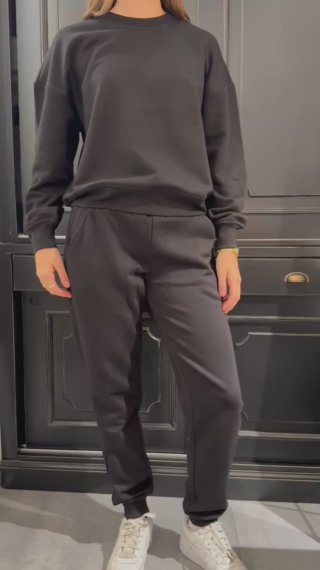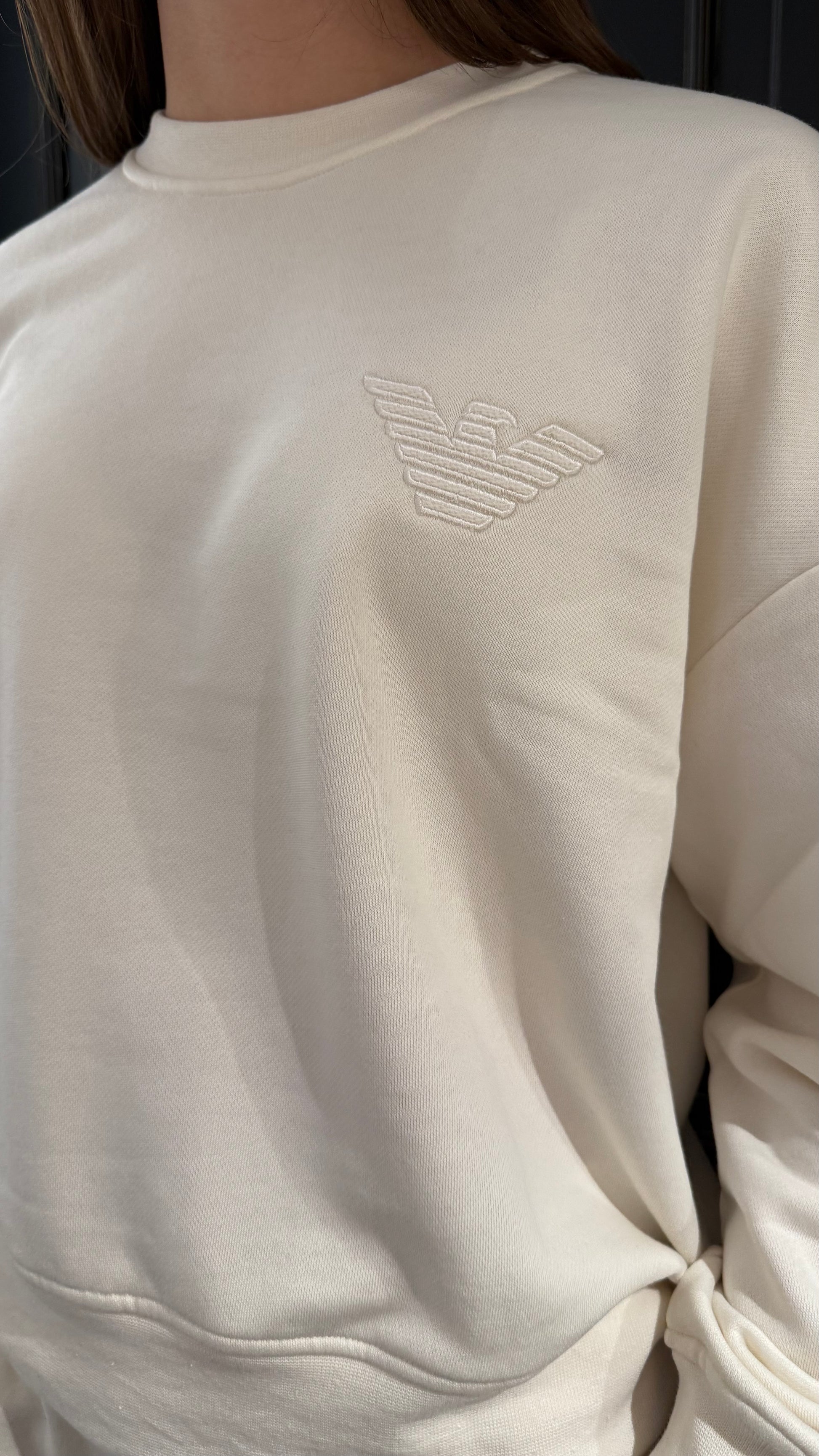 Felpa a girocollo manica con polsino e logo ricamato tono in tono